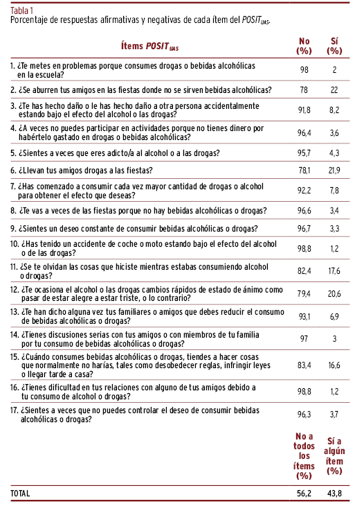 Validación de la versión española del POSITUAS como herramienta de amplio espectro para la detección precoz del consumo problemático de alcohol y sustancias en la adolescencia