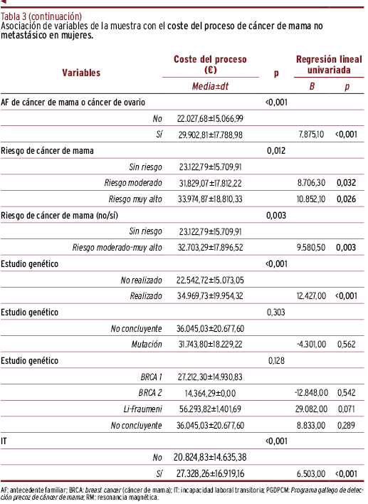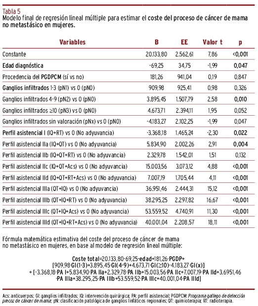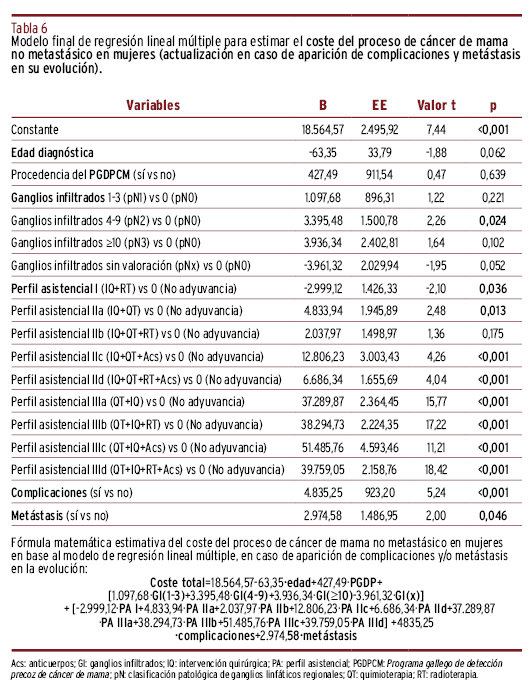 Elaboración de un modelo predictivo para la estimación de los costes asistenciales en mujeres con cáncer de mama no metastásico