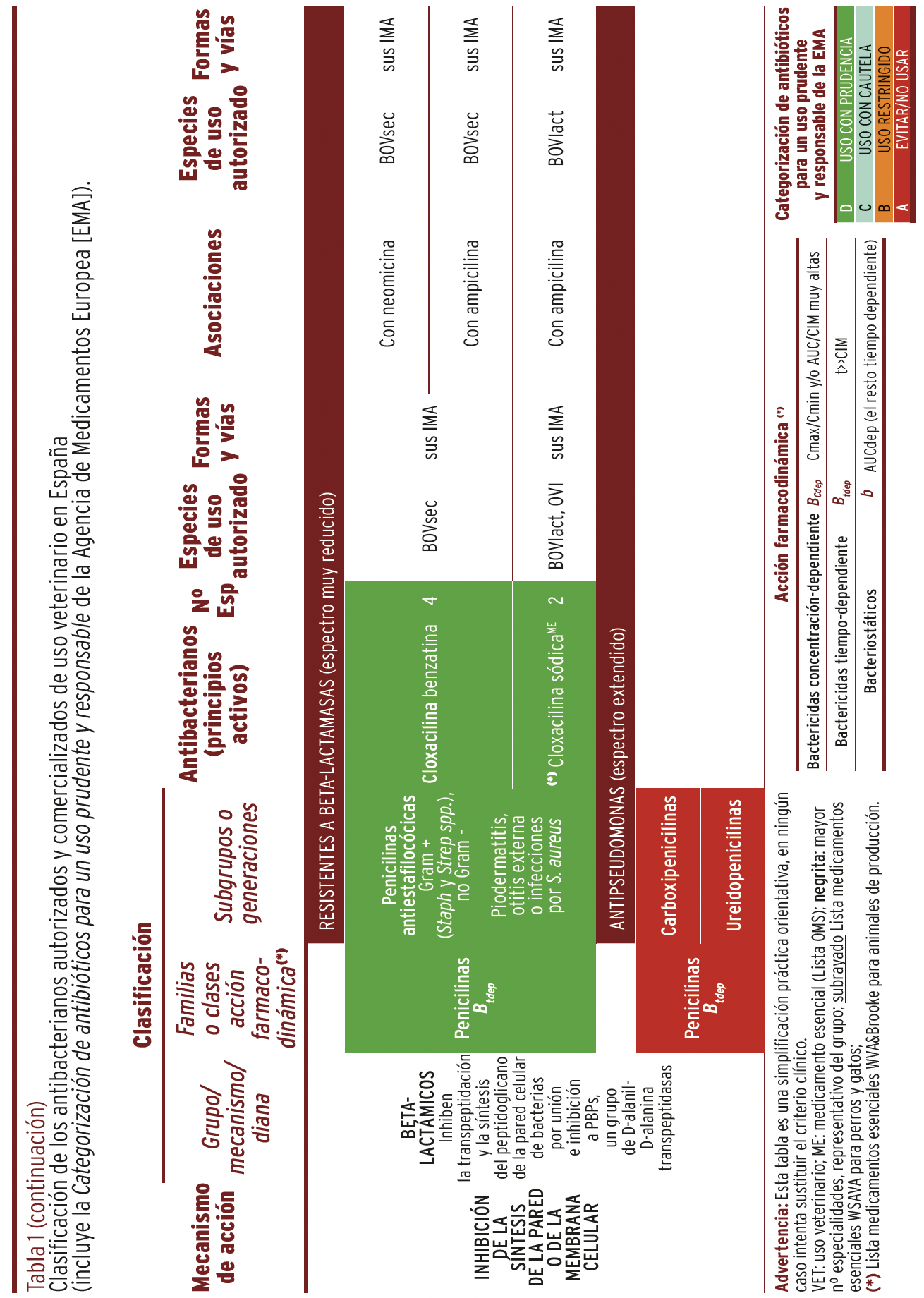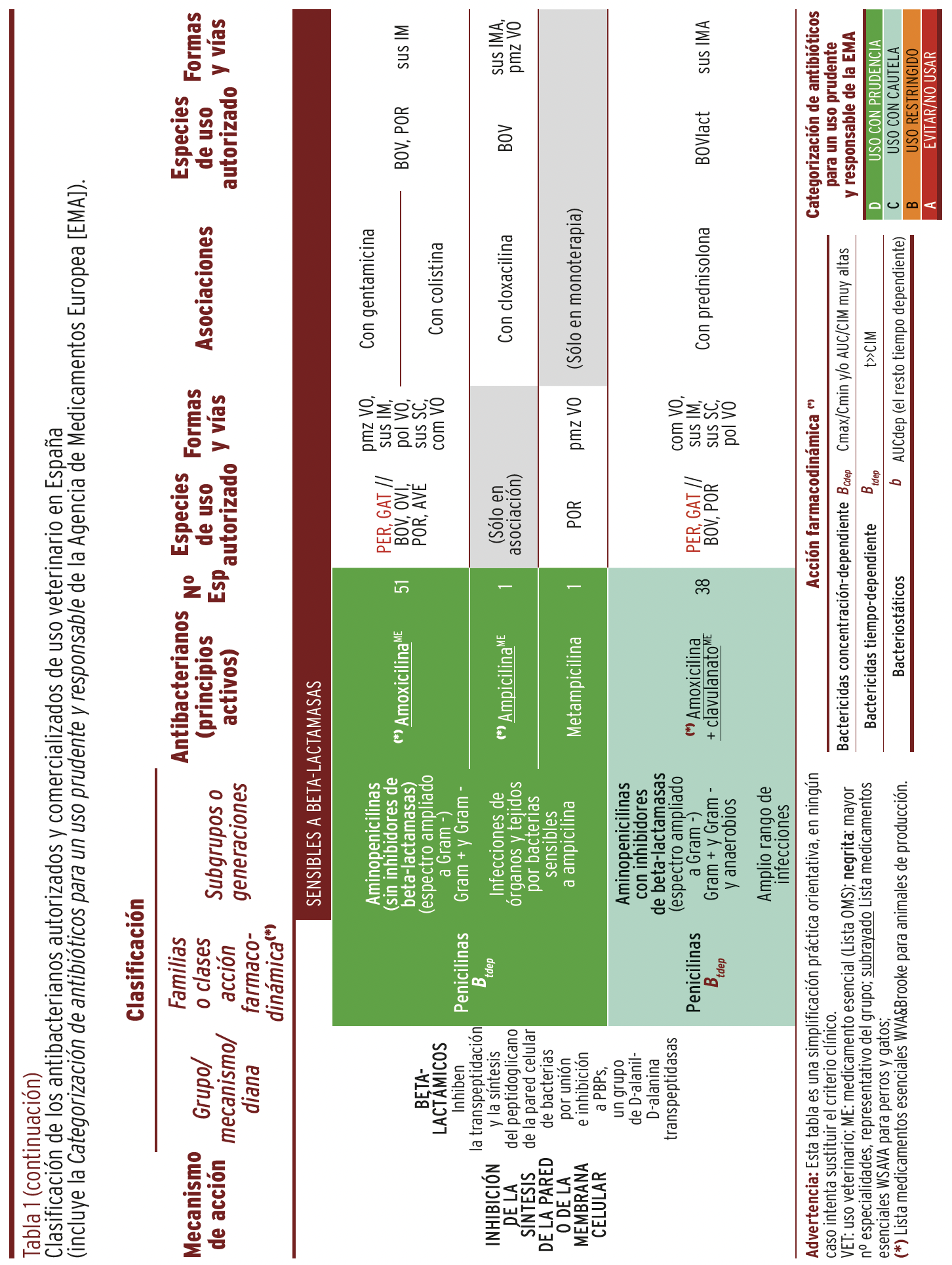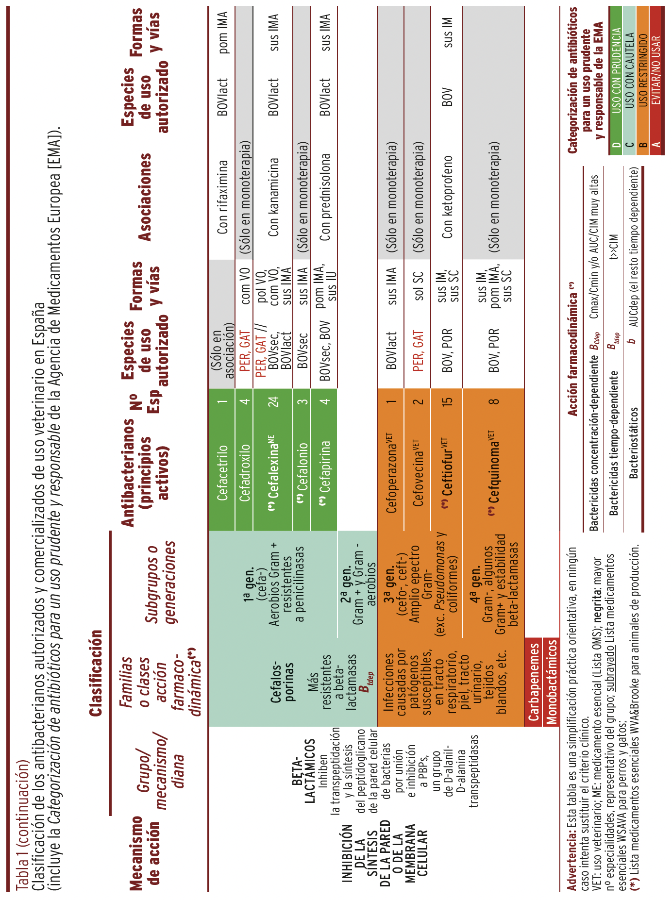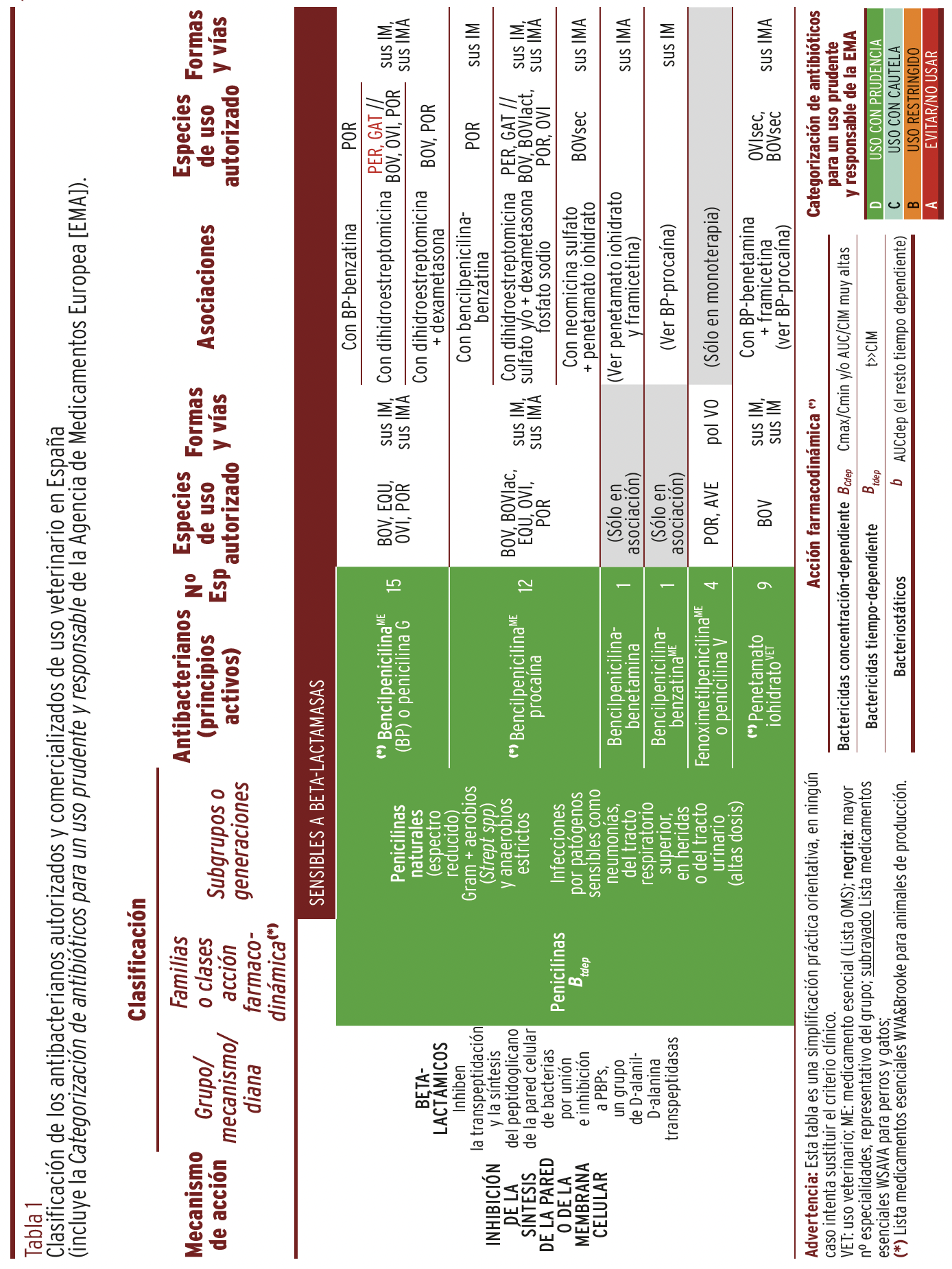MÉTODOS // Se recopiló y organizó la información de todos y cada uno de los principios activos autorizados y comercializados en España y su uso en diferentes especies animales en una tabla panel, que incluye sus características más relevantes junto con la categorización para un uso prudente y responsable en animales, recomendada por