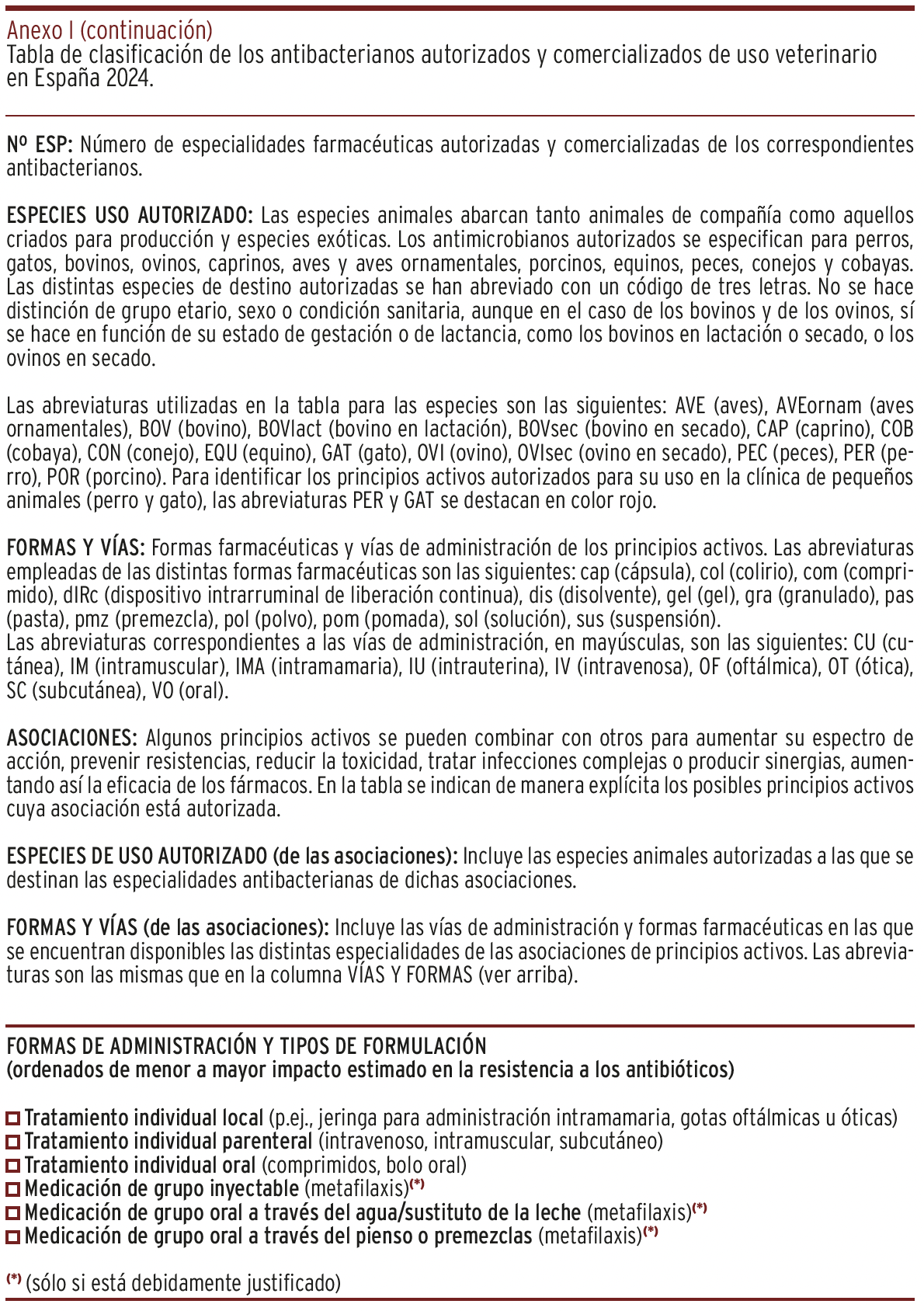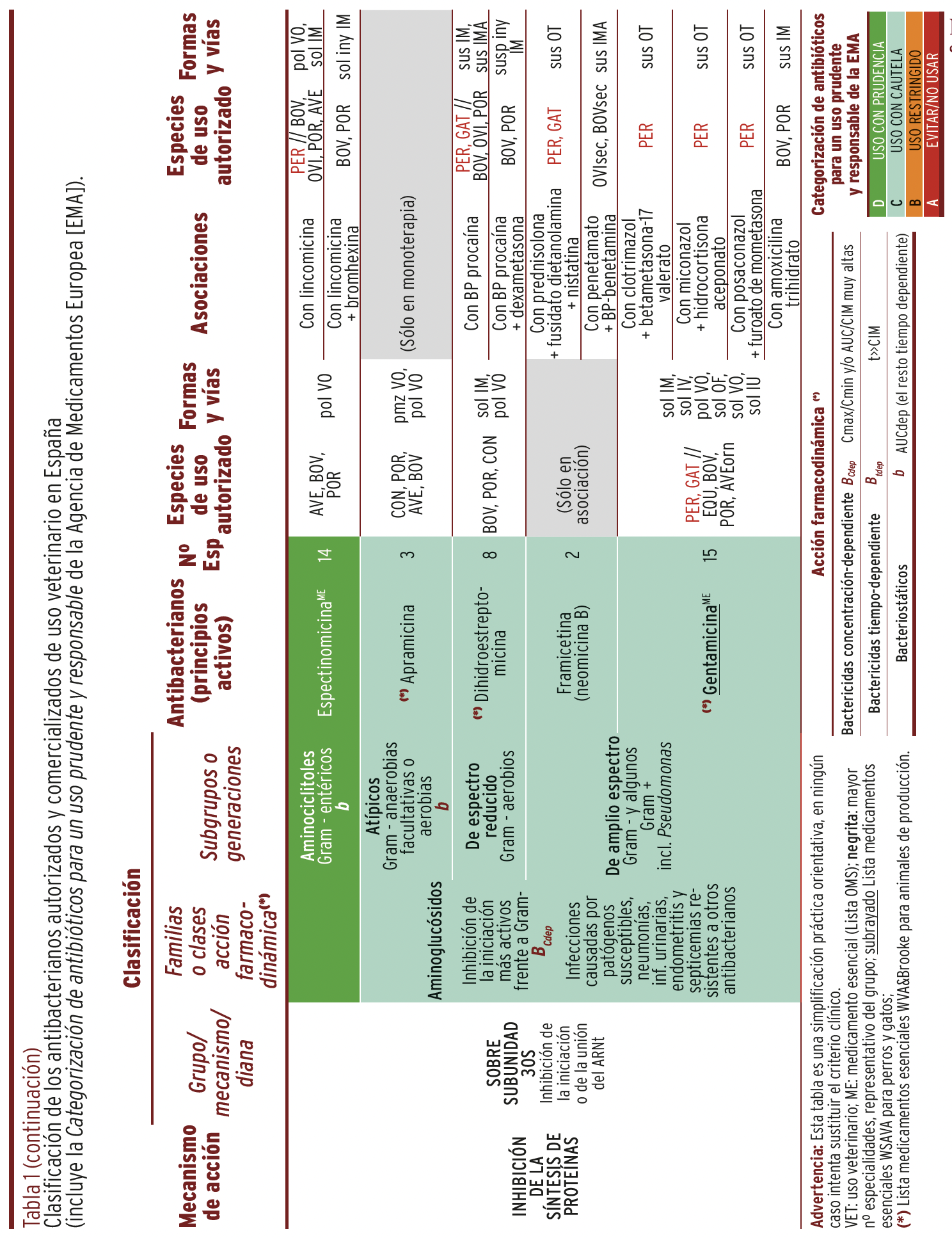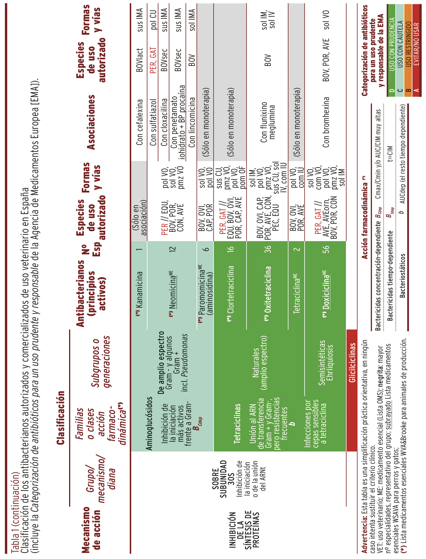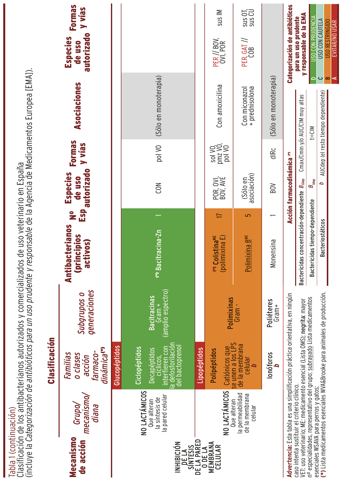 MÉTODOS // Se recopiló y organizó la información de todos y cada uno de los principios activos autorizados y comercializados en España y su uso en diferentes especies animales en una tabla panel, que incluye sus características más relevantes junto con la categorización para un uso prudente y responsable en animales, recomendada por