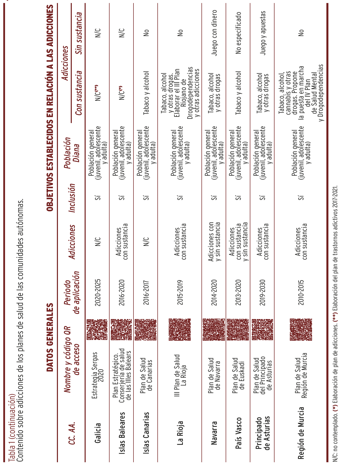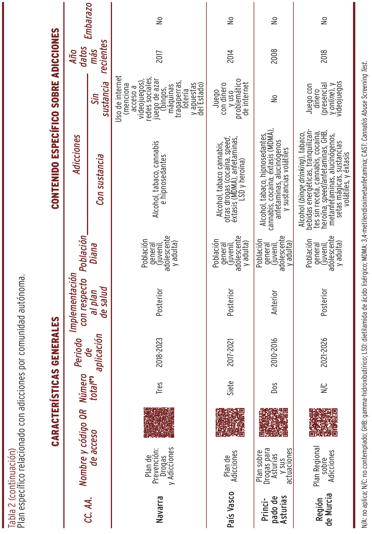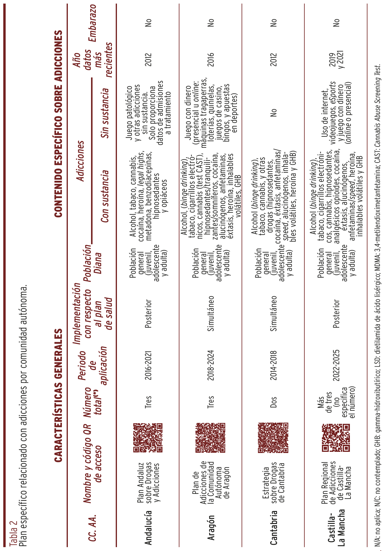 Planes de salud, planes sobre adicciones y sistemas de información: abordaje de las adicciones desde las comunidades autónomas de España
