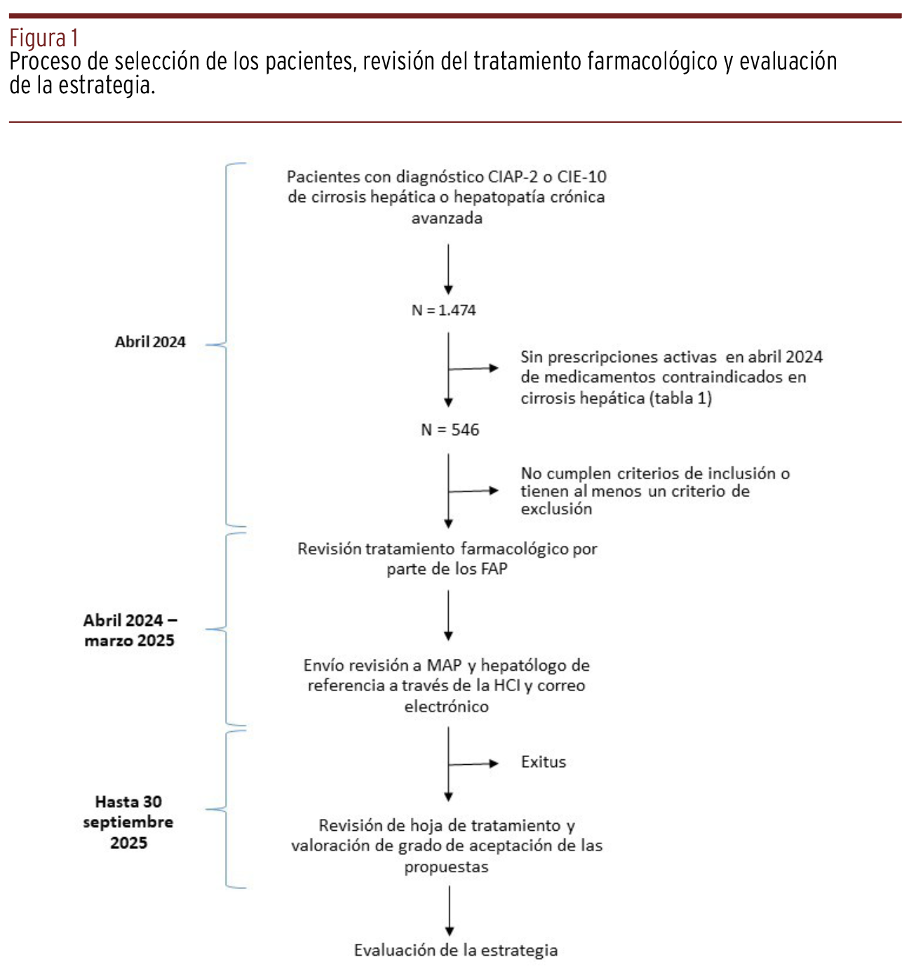 Los FAP realizaron propuestas (ajuste de dosis, sustitución por alternativas más seguras, suspensión o monitorización de reacciones adversas) a través de la historia clínica informatizada teniendo en cuenta el estadio de la enfermedad (Child-Pugh) y el resto de comorbilidades, dirigidas a los médicos responsables de la farmacoterapia del paciente (médico hepatólogo, de Atención Primaria u otras especialidades), quieres realizarán las modificaciones que consideren oportunas.