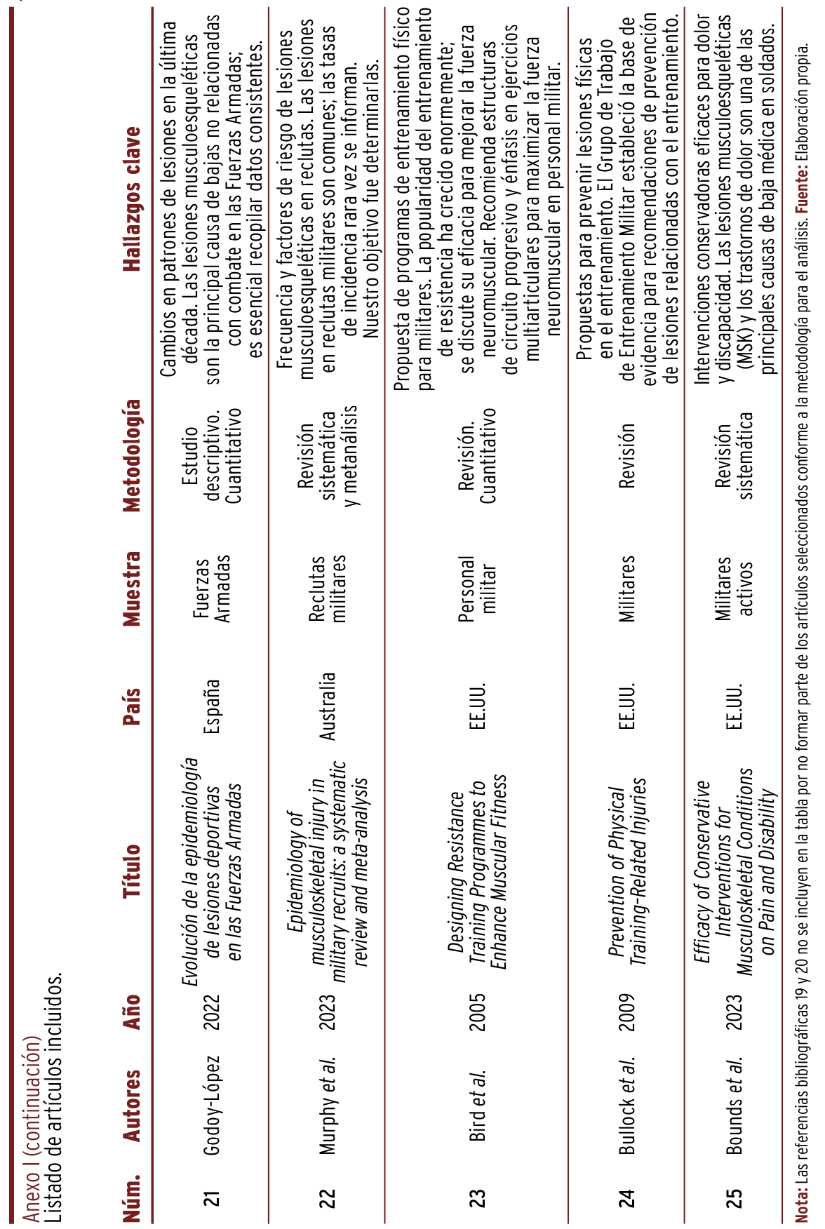 21. Godoy-López JR. 2009-2019: evolución de la epidemiología de lesiones deportivas en las Fuerzas Armadas. Sanid Mil. 2022;78(4):229-235. https://scielo.isciii.es/pdf/sm/v78n4/1887-8571-sm-78-04-229.pdf