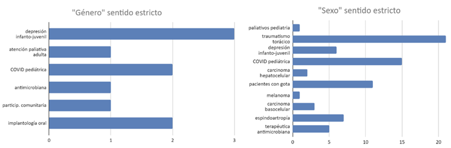 RESULTADOS // De las 21 GPC examinadas, 11 no incorporaban evidencias donde se señalaran diferencias o similitudes entre hombres y mujeres. Las que incluían alguna evidencia, lo hacían de diferentes maneras: 2 excluían a los hombres; 1 incluía ejemplos de sexo y género e interseccionalidad; 3 incluyeron evidencias de sexo o género; 3 usaron lenguaje inclusivo; y 1 mostró interseccionalidad sin enfoque de sexo/género en su redacción.