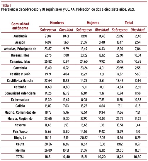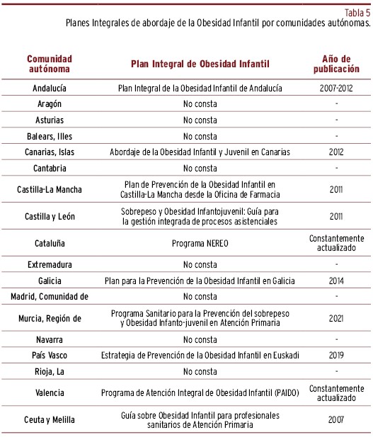 Abordaje de la obesidad infantil. Comparativa entre comunidades autónomas