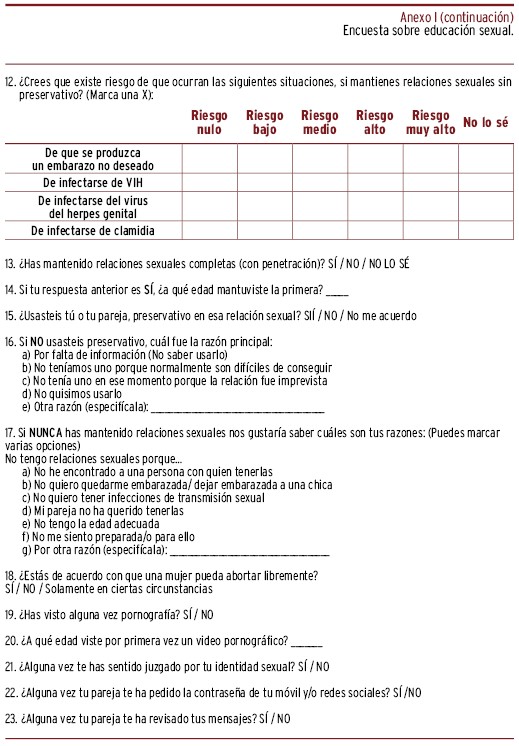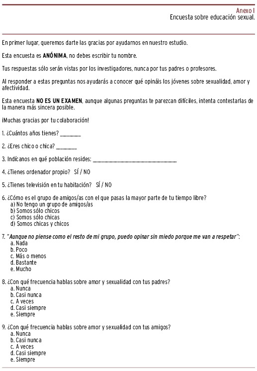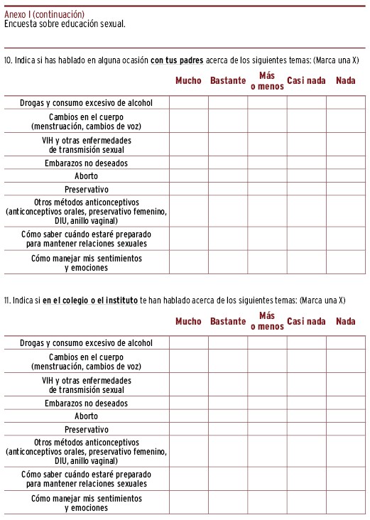 Encuesta para conocer la percepción sobre la educación sexual en adolescentes