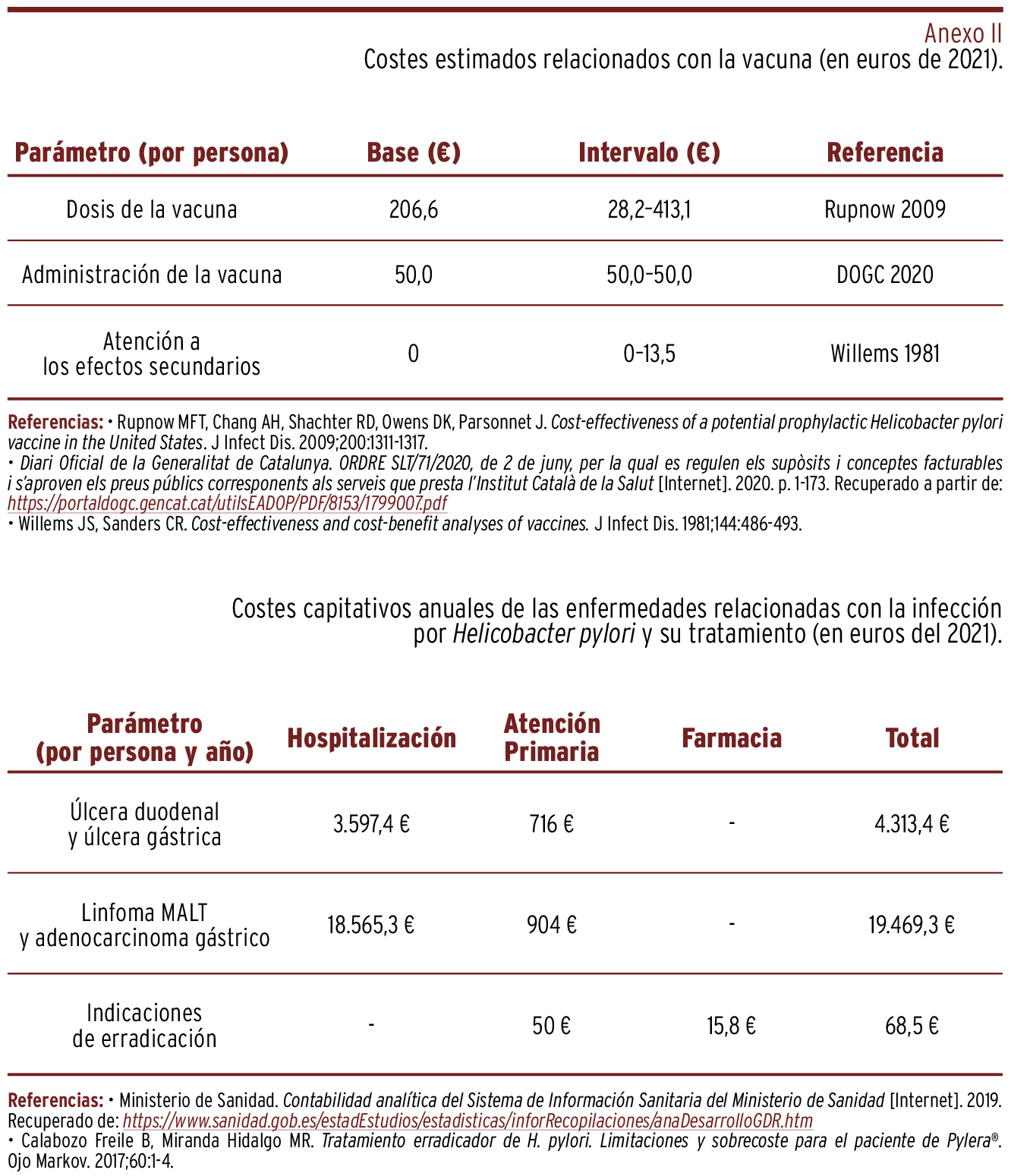 CONCLUSIONES // Una vacunación frente a la infección por H. pylori administrada en la infancia sería coste-efectiva a largo plazo en un entorno con las características epidemiológicas y económicas del sur de Europa.