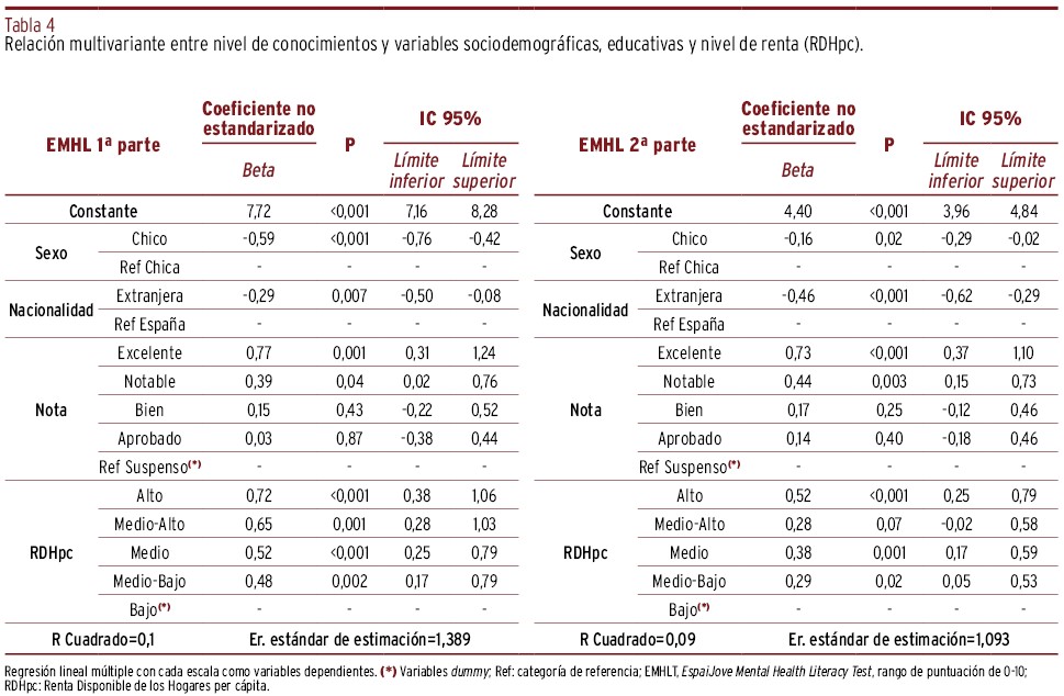 Alfabetización en salud mental en adolescentes españoles y su relación con las características sociodemográficas