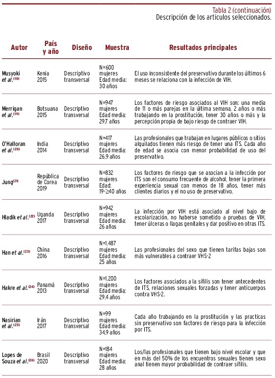 Coetzee J, Jewkes R, Gray GE. Cross-sectional study of female sex workers in Soweto, South Africa: Factors associated with HIV infection. PLoS One. 5 de octubre de 2017;12(10).