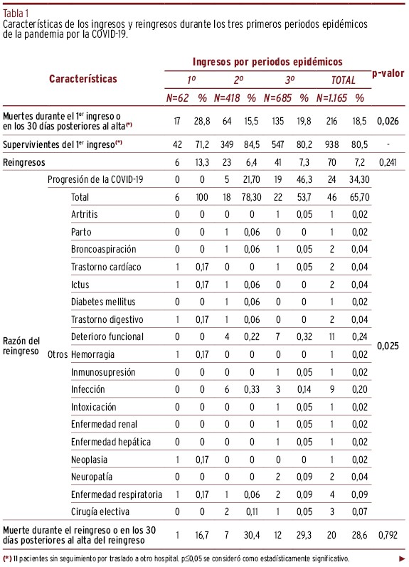 Reingresos por la COVID-19 durante los tres primeros periodos epidémicos en Orihuela, España: incidencia, factores de riesgo y letalidad