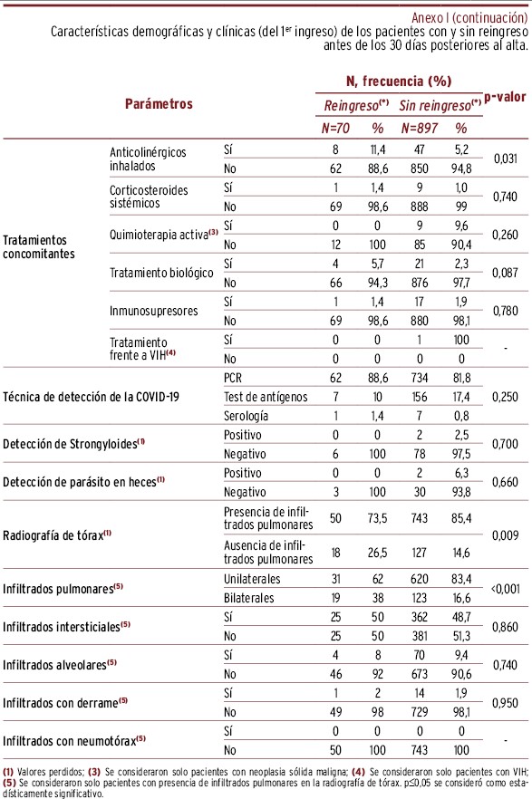 FUNDAMENTOS // Los reingresos por la COVID-19 se asocian a un incremento de la mortalidad, saturación de los servicios sanitarios y elevados costes. Este estudio pretendió evaluar la incidencia y los factores de riesgo de reingreso en pacientes con COVID-19 en un hospital comarcal español entre febrero de 2020 y marzo de 2021.