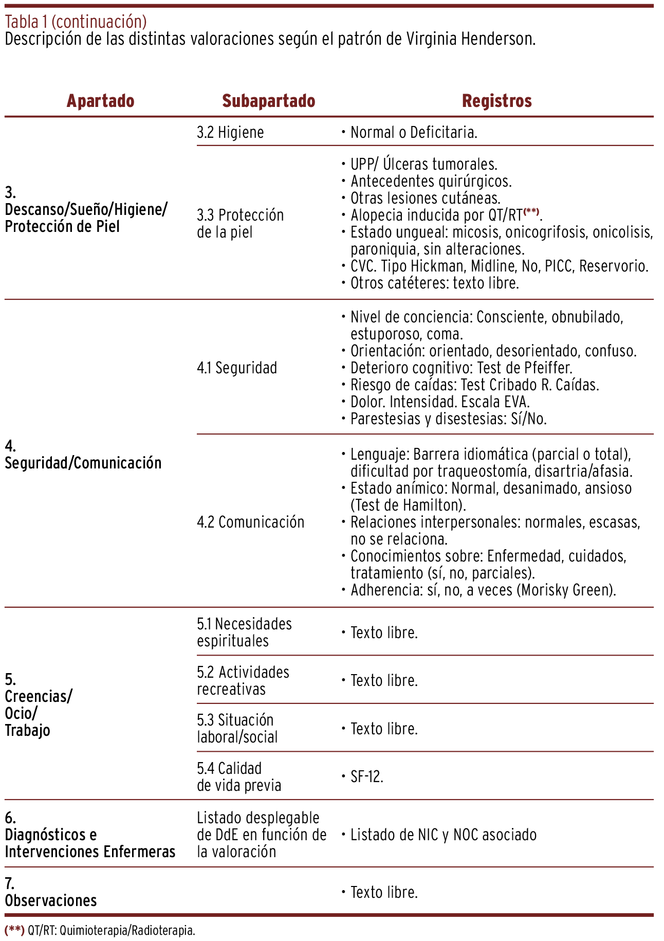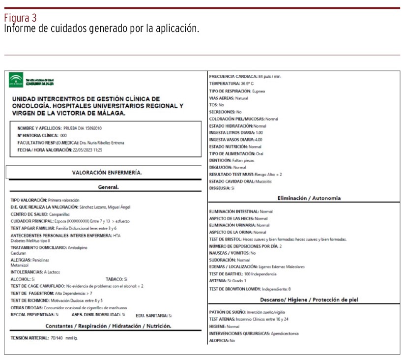 FUNDAMENTOS // La Unidad de Gestión Clínica Intercentros (UGCI) de los hospitales universitarios Regional y Virgen de la Victoria de Málaga ha desarrollado, en colaboración con el Instituto Biomédico de Investigación de Málaga (IBIMA Plataforma Bionand) y la Universidad de Málaga (UMA) un sistema propio de registros que permite realizar el procedimiento de una manera sencilla e intuitiva, por medio de una interfaz de usuario amigable, la cual incluye las necesidades básicas según Virginia Henderson, y una serie de test de valoración (Pfeiffer, Braden, etc.).