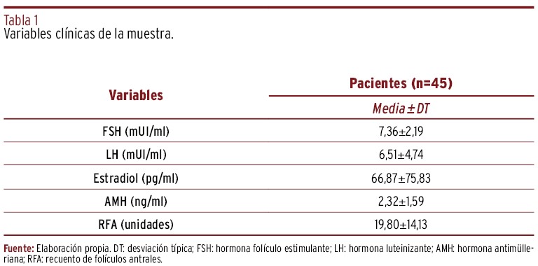 MÉTODOS // Se efectuó un estudio descriptivo transversal, de un año de duración, entre los meses de febrero de 2022 y febrero de 2023, en una muestra de cuarenta y cinco pacientes de sexo femenino que acudieron a la consulta de Ginecología-Esterilidad en el Hospital Marina Salud de Denia (España) por deseo genésico mayor a un año. Se realizó un análisis descriptivo de carácter exploratorio basado en una estadística univariable.