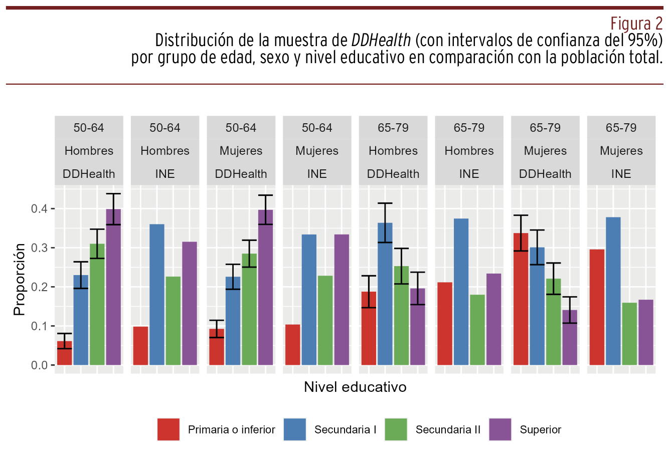 CONSIDERACIONES ÉTICAS Y DISCUSIÓN // La DDHealth permite abordar dimensiones innovadoras acerca de los determinantes sociales de la salud en España. Los datos de la DDHealth están disponibles para investigadores externos con fines científicos previa solicitud de una propuesta de investigación razonable.