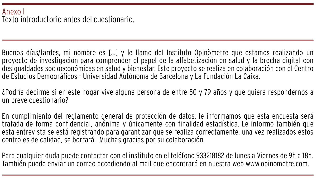 Brecha digital, Alfabetización sanitaria, Desigualdades en salud, EncuestaResumen