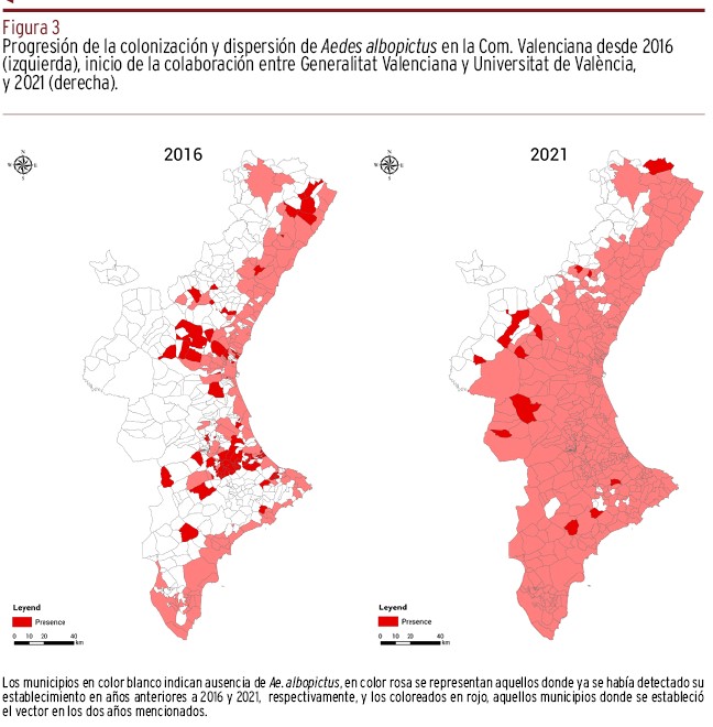Programa de vectores de relevancia en salud pública en la Comunitat Valenciana, 2021. Sanitat Ambiental. Sudirecció General de Epidemiologia, Vigilància de la Salut i Sanitat Ambiental. Direcció General de Salut Pública i Addicions. Generalitat Valenciana, Conselleria de Sanitat Universal i Salut Pública. Disponible en: http://www.sp.san.gva.es/DgspPortal/docs/PROGRAMA_VECTORES_2021_cas.pdf [consultado julio de 2024].