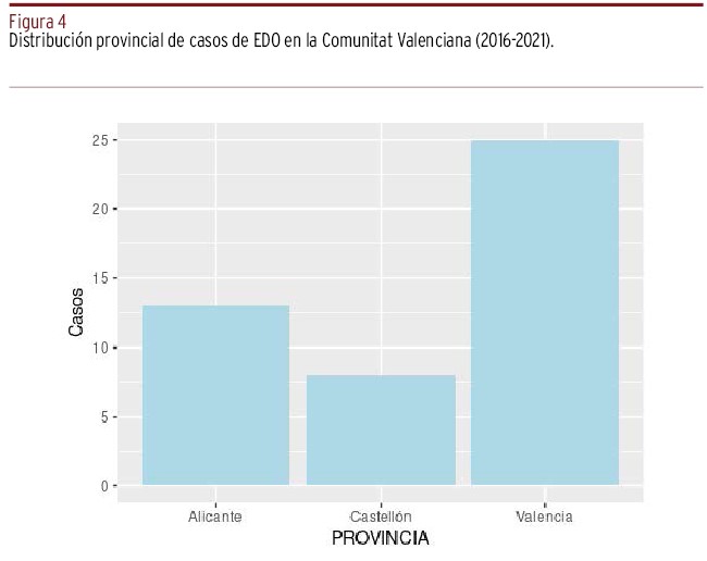 MÉTODOS // Para ello, se implementaron procedimientos de trabajo coordinados entre Generalitat Valenciana y Universitat de València con el fin de reducir el riesgo de transmisión autóctona mediante detección, vigilancia y monitoreo del vector, así como encuestas entomológicas en las inmediaciones de la residencia de ciudadanos contagiados. El tamaño muestral consistió en cuarenta y cinco casos importados, los cuales fueron analizados con el software estadístico R versión 3.3.