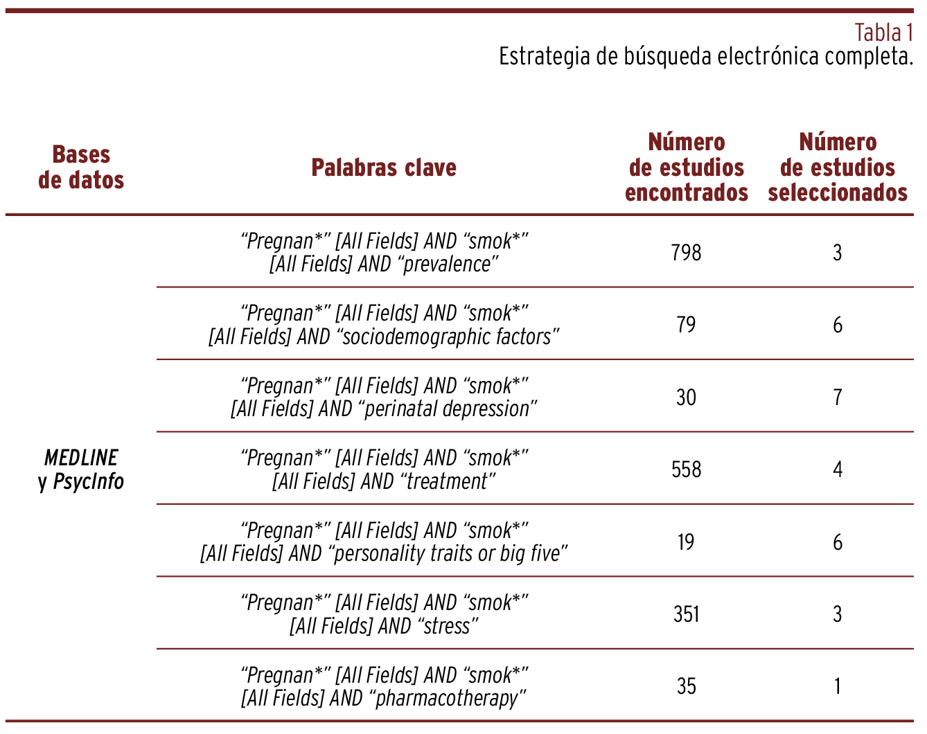 MÉTODOS // Se llevó a cabo una revisión bibliográfica en las bases de datos MEDLINE y PsycInfo desde el año 2013 al 2023 sobre los aspectos más relevantes del tabaquismo en el embarazo, incluyéndose treinta estudios.