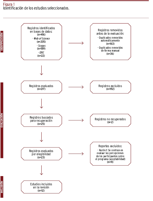 MÉTODOS // Se realizaron búsquedas en Web of Science, Scopus y ERIC, de artículos empíricos producidos en los últimos cinco años. Fueron incluidos doce estudios que caracterizaron los programas preventivos en relación con su lugar de aplicación, las teorías que los sustentaban, sus objetivos, su público objetivo, formato, estrategias interventivas, duración y contenidos, así como su efectividad.