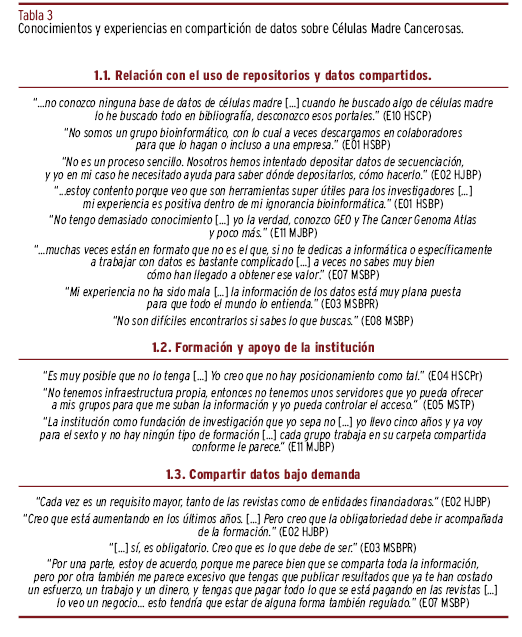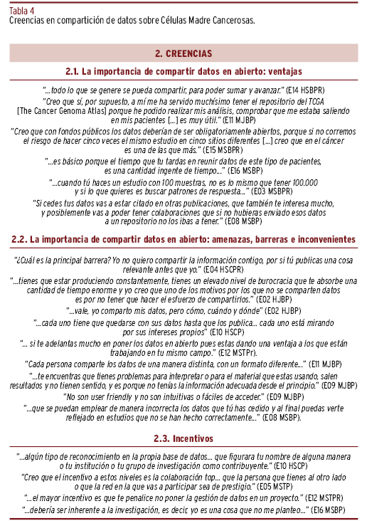 El desafío de compartir datos de investigación en abierto. Un estudio cualitativo sobre conocimientos, creencias y actitudes del personal investigador y/o clínico sobre las células madre cancerosas en España